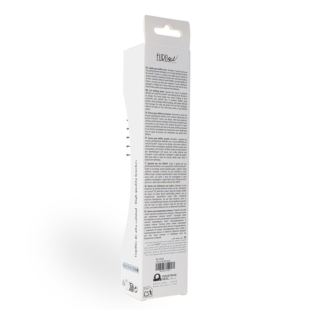 Die EUROStil® Curl Defining Brush ist speziell für die Bedürfnisse von lockigem und welligem Haar entwickelt. Dank ihres ergonomischen Designs und der atmungsaktiven Struktur wird der Luftstrom beim Föhnen optimiert, das Trocknen beschleunigt und Frizz deutlich reduziert.