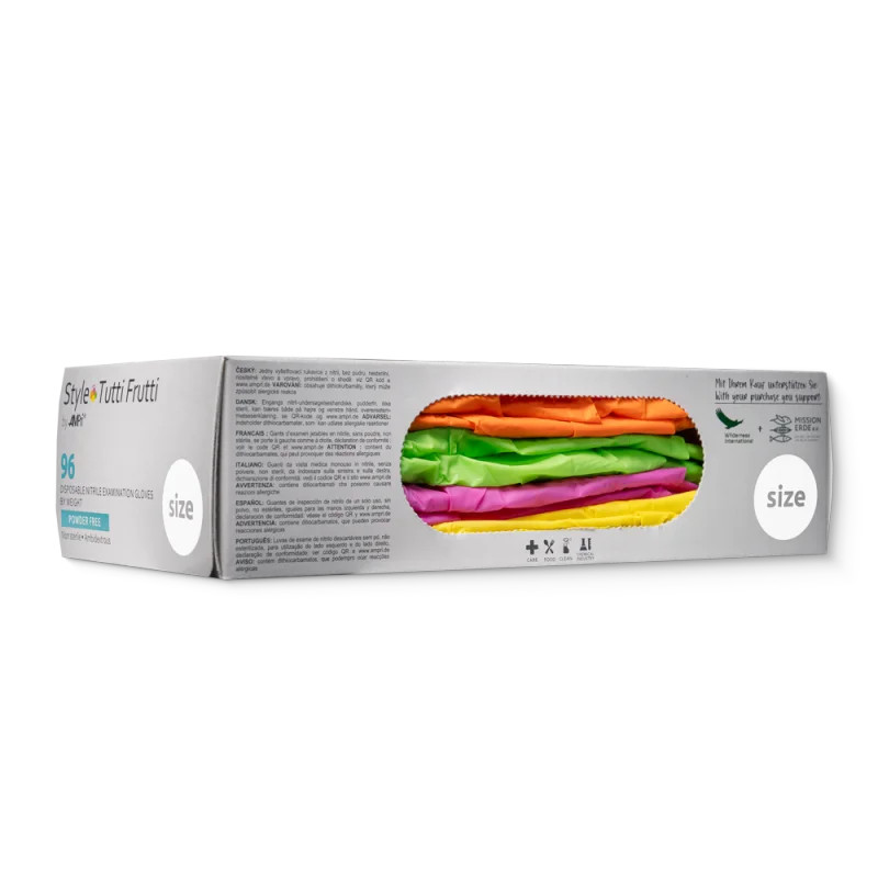Die puderfreie Verarbeitung sorgt für ein angenehmes An- und Ausziehen, ohne Rückstände auf Haut oder Arbeitsmaterialien zu hinterlassen. Dank ihrer Vielseitigkeit eignen sich die Tutti‑Frutti‑Handschuhe perfekt für den Einsatz im Friseur‑ und Kosmetikbereich, in der Pflege, im Haushalt, in der Gastronomie sowie im Lebensmittelkontakt.