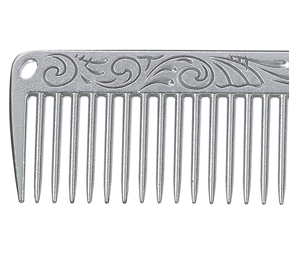 Gefertigt aus hochwertigem, eloxiertem Aluminium ist der Kamm extrem leicht, formstabil und hitzebeständig – ideal für den Einsatz mit Föhn, Glätteisen oder chemischen Produkten. Die fein abgestuften, abgerundeten Zähne gleiten sanft durch das Haar und sind besonders schonend zur Kopfhaut.